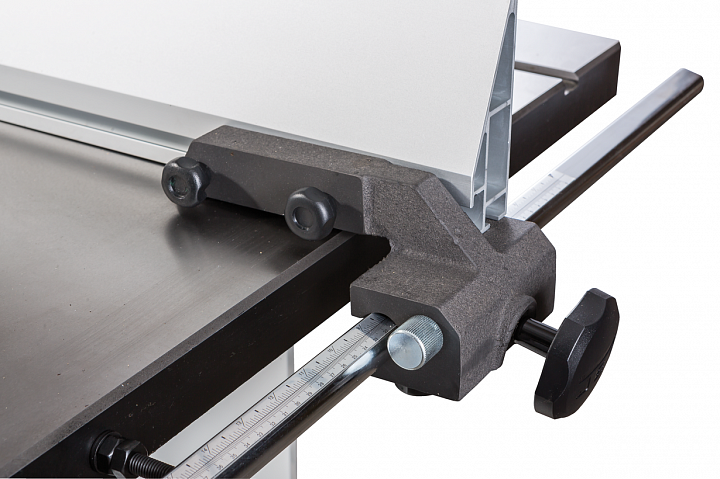 Рабочий стол чугунный, поворотные сегменты, на которые он опирается, из этого же материала. Наклон производится при помощи зубчатого механизма вращением рукоятки и возможен в обе стороны (на 5° в сторону станка и на 45° от него). Для наибольшей эффективности пылеудаления установлено два 100-миллиметровых патрубка: один под рабочей поверхностью, второй в нижней части корпуса.