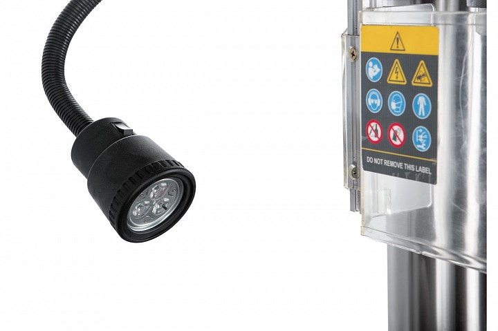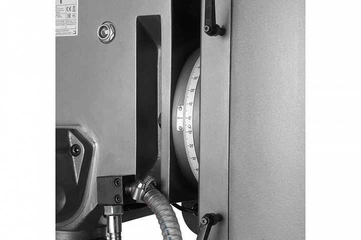 Для расширения задач по обработки заготовок, фрезерная головка станка имеет возможность поворота влево/право на 900, облегчая технологические манипуляции в процессе обработки. Станок оснащен функцией контроля над глубиной сверления, повышая качество обработки и производительность.