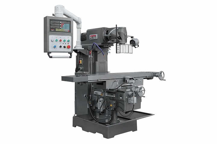 Универсальный фрезерный станок JET JUM-1153VHXL DRO – мощный и производительный станок в линейке оборудования компании. Он удовлетворит требованиям самого взыскательного заказчика и рассчитан на тяжелые условия эксплуатации и длительные нагрузки. Станок предназначен для всевозможных видов фрезерной обработки, сверления, растачивания и прочих операций при производстве деталей мелкими сериями на механо-обрабатывающих, инструментальных и ремонтно-механических участках.